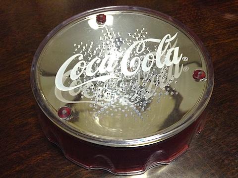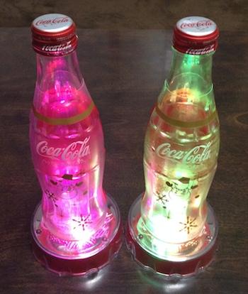 妻が購入してきたものなので、私が見た時はすでに箱もコーラの中身も無くなっていて、LEDコースターと空のボトルだけがテーブルの上に置かれていました。
