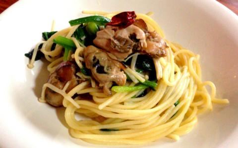 早速、この牡蠣を使ったペペロンチーノを作って食べました。正確には、「作って貰った」と表現すべきか?(最近、zigsowも時々、覗いているらしい…)オイルも捨てずに使っています。