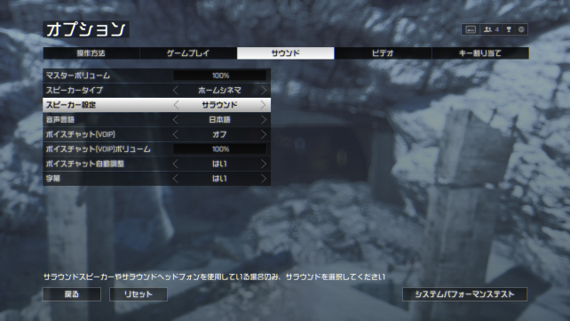 Battlefield4には、サウンド設定で