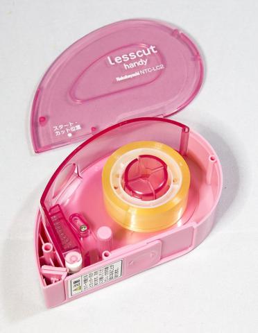 テープを触ることなく、片手でテープ貼りが行えるテープカッターです。
