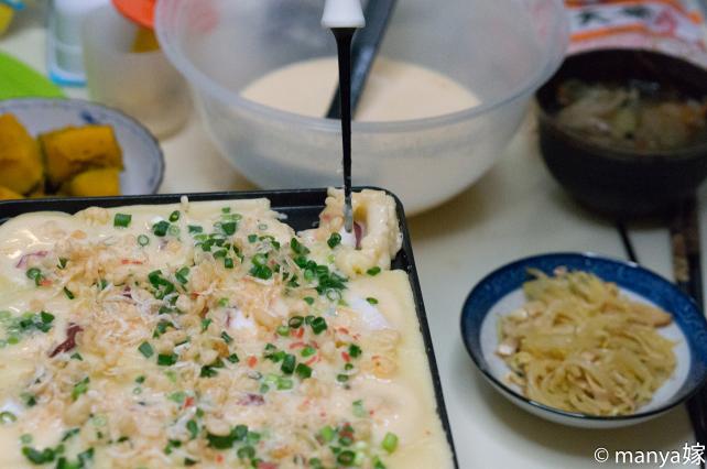 定番のたこ以外にもパンチェッタ・ソーセージ・チーズ・明太子・ベビーホタテ・切り餅なんかも用意して、いざたこ焼きパーティです。