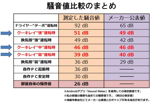 ファン風量が少ないせいか、騒音値や消費電力が若干上がっていますが、