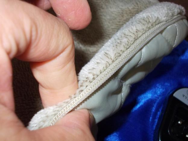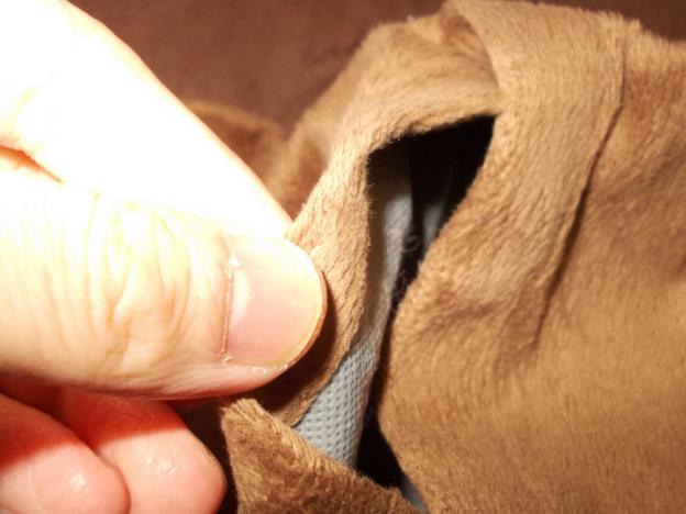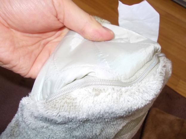 裏はナイロンで風を通しにくく中の詰め物に加え、取り出し口には