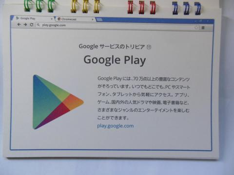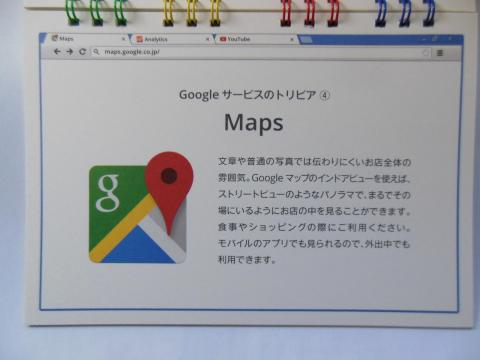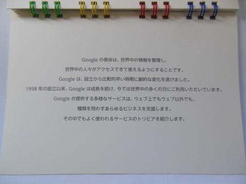 毎月のカレンダーを見るとその背面には月ごとにGoogleのサービスに関する説明があります。