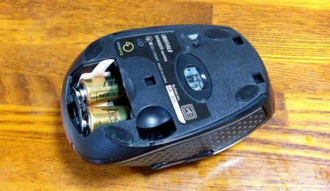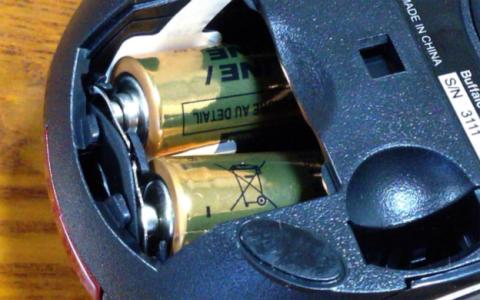 (このマウスは「ハの字型」に電池が収まるが異常ではない)