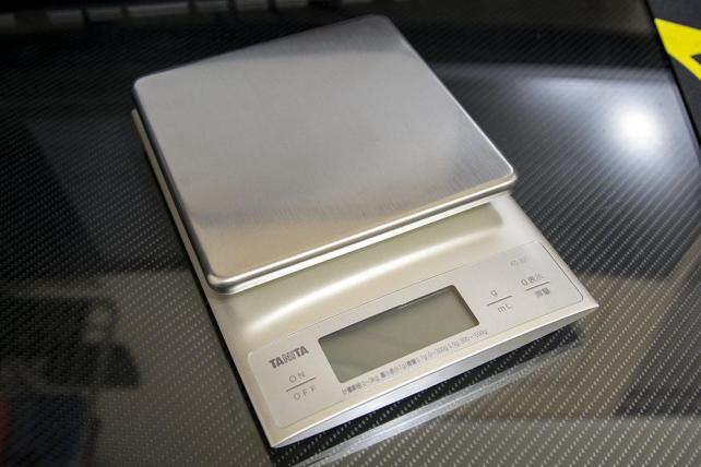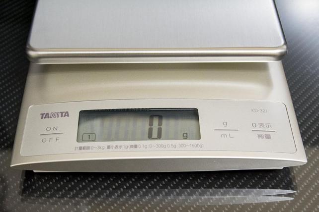 このスケールを選んだ理由は、なんといっても信頼のタニタ製ということと、最大3kgまで測定可能という点。
