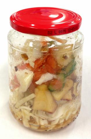 食べる前に、瓶ごと良く振る。(画像では、最初からカバンの中で振られているので「どっちがどっち」か判らない…)もちろん、振る前に「蓋がしっかりと閉まっている事」を確認しなければならない。味に関しては、自然な甘さと酸味でリンゴはサラダにとても合うみたいだ。しかし、自分には少し、量が足りなかった…。
