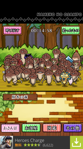捕まえたなめこたちに散歩に出かけてもらい、食材を拾ってきてもらいます。