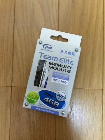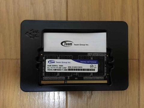 TeamのSO-DIMMで、DDR3-1600 4GBです。