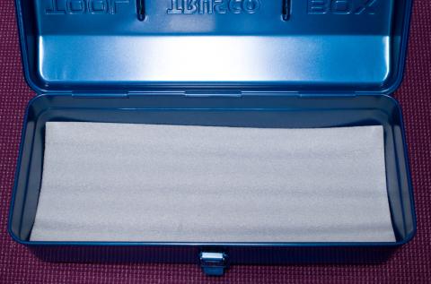 ホームセンターで手軽に手に入るスチール製TOOL BOXというと、このブルーのヤツ。