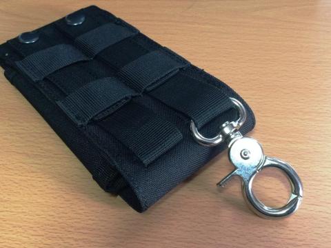 ケースのベルトに通して固定してしまえば、ワンタッチでベルト通しのところに付けられるし、カバンにも付けられそうなので、これにしました。