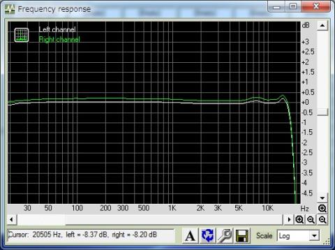 今回のサウンドカードの周波数特性では15KHZで約+0.5dbあがっているようです