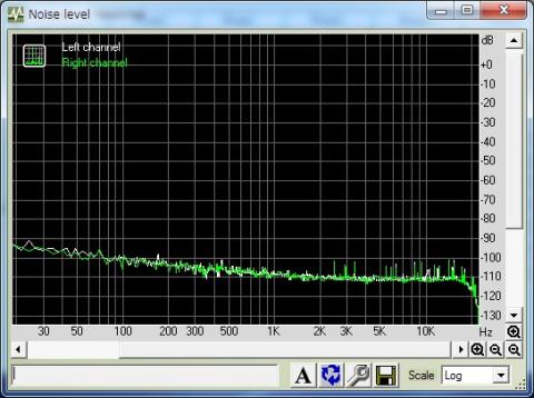 ループバック測定で、30CMのミニミニコードをライン入力、SP出力に接続し測定しました