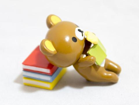 本のへこみにリラックマを乗せます。