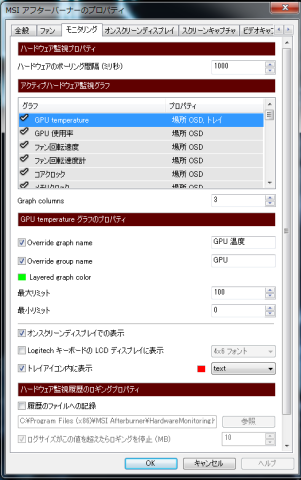RIVATUNERを使用したオンスクリーンディスプレイ(OSD)の表示する項目もここで設定