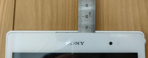 タブレットの上部から少しずつ粘着テープを剝がします。
