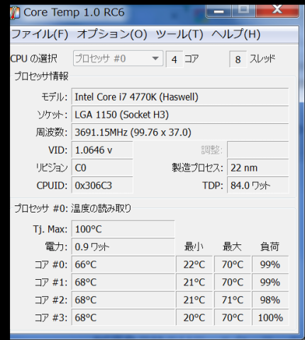 ↓リテールクーラー使用時に2時間程動画エンコードを行った際の温度