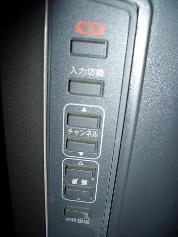 パネル類の画像です。右横に上から電源、入力切替、チャンネル、音量、本体設定。