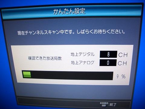 チャンネルスキャンが自動で開始されるので待つだけ。