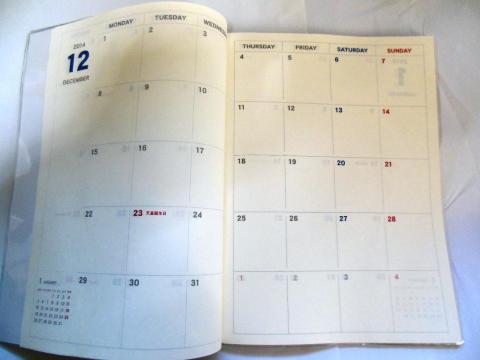 表紙の次にカレンダーが2015年と2016年分あります。