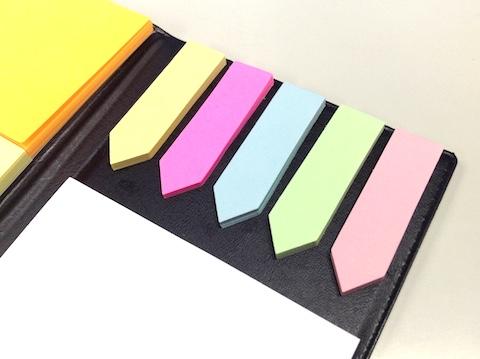 一番細い先端が尖ったネクタイのような形の付箋は、見出し的な使い方以外にもスポット的に場所を指す用途で使ったりと、何かと使い勝手が良さそうな感じです。