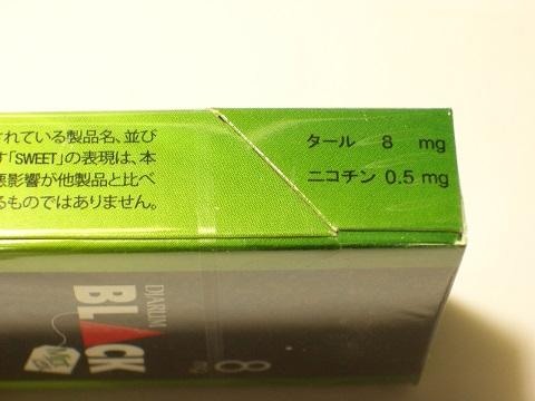 パーッケージのTN値を見ると、タール:8mg、ニコチン:0.5mgとなってます。