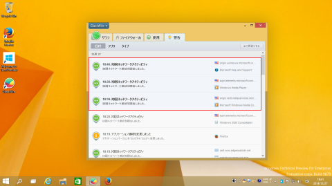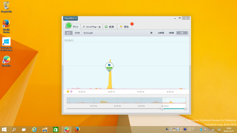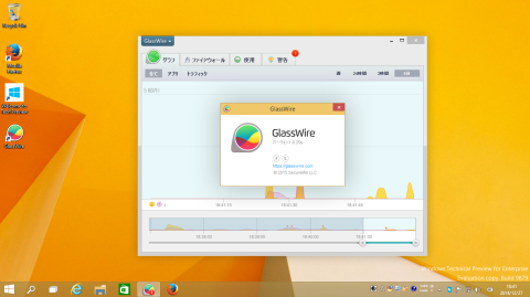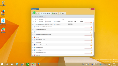 スクリーンショットを撮った Windows Technical Preview 上では,GlassWire の Firewall 機能を有効にしてもアクションセンターでファイアーウォールが有効と認識されないこともあり,無効化していますので当然と言えば当然ですが,システムへの影響は体感できるほどではないと言えるでしょう。