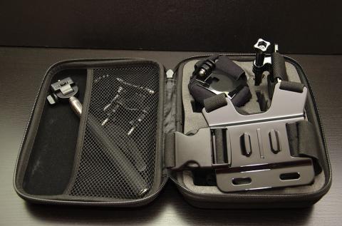 早速、保護ケースにGopro本体と手持ちのマウント類を詰め込んでみました。が、流石に入りきりませんでしたので、傷つけたくない本体と無くしやすい小物類を保護ケースに、チェストハーネスのような場所を取るものは今まで通り別のケースに纏めることにしました。