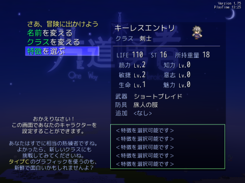 新たな伝説を選ぶと、名前やクラス(職業)のほかに