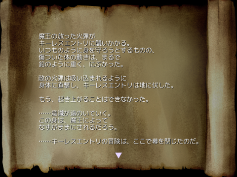 「魔王」からの強烈な一撃をくらい、プレイヤーは倒れてしまう。