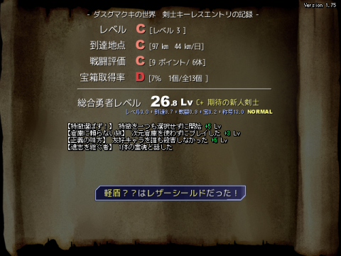 最後に、プレイヤーの今回の冒険を評価してくれる。