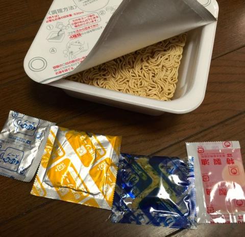 構成はフライ麺、粉末ソース、ドライ火薬、特製油、わかめスープの高級構成