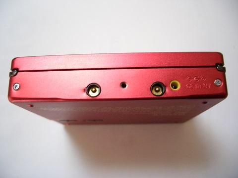 本体手前の画像です。左から単三電池ケース接続端子、充電用のDC INジャック。