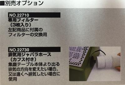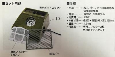 用途は、木工、金工、ガラス彫刻時の集塵となっています。