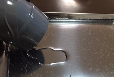 でも、やはり右側面より切削粉が吹き出してしまうのが心配なため、水を使った簡易フィルターを作りました。