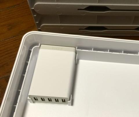 蓋を開けたところ。ANKERの40W5ポートがジャストフィットするように設計されています。