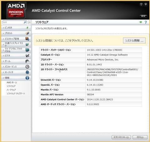 ちなみに、ドライバーのバージョンは「14.501.1003」です。