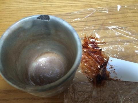 まずは漆とご飯粒等をまぜて欠けたところを埋める作業から・・・