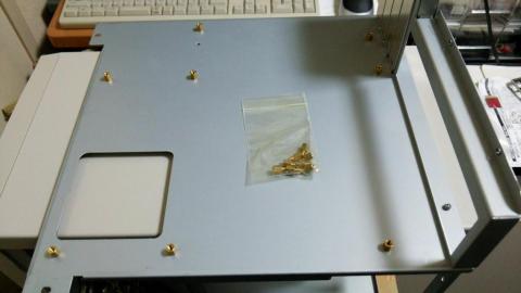 このケースはマザーボードを取り付けるのに、サイドの内板を外す必要があります。ネジを外す箇所が多いです。そして内板にスペーサーを取り付けます。