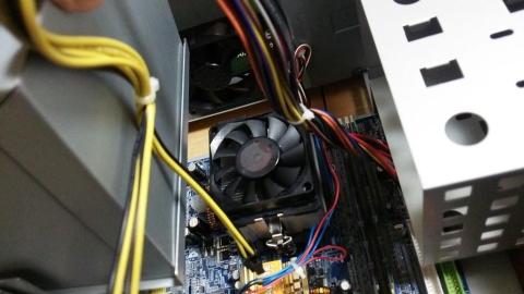 電源は玄人志向の静音タイプに換装したかったのですが・・・ファンがサイドカバー側を向いてしまいます。そしてそのサイドカバーには通気口が無いorz よって電源を窒息させるだけなので止めておきました。ファンがあっても吸気口が無いと風を送れないお(´・ω・`)・・・