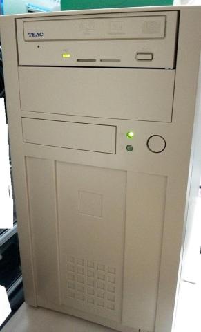 このケースは非常に重い肉厚のスチールケースでまるで工業用PCを彷彿させます。個人的には丸みの無いリニアなデザインが好きなので、この手のデザインは好みです。色もいかにも昔のパソコンを思わせるようなベージュです。(当時は色付きのケースを買うと、同色のドライブが高価なのでコスパが悪かったです)