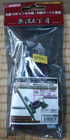 USBピンヘッダのブラケットみたいなものですが、2つのうち1つは内部についています。PC本体内部にLinuxなどの起動用USBメモリをつけておくには良いかも。面白い商品ですね。