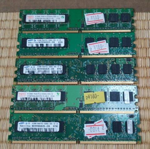 18.Samsung PC5300 DDR2 512MBが3枚(中古・妄想価格20円×3)