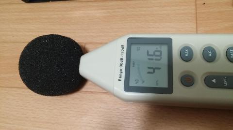 正確に測定するには床から離して30db未満の防音室で測るべきですが、そんなん用意できません。