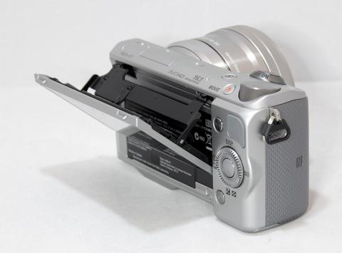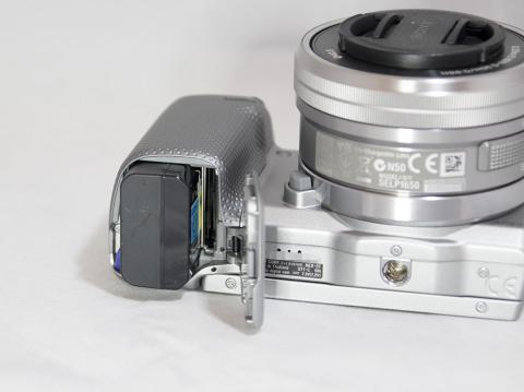 グリップ下から、バッテリーとメモリーカードが入ります。