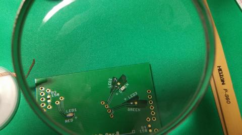 基盤裏面です。LEDを3個、抵抗を5個半田付けすれば完成です。