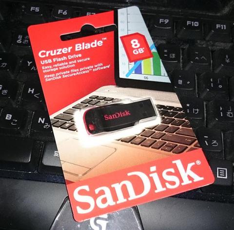 フラッシュメモリー製品のメジャーブランドであるSanDisk製ですが、人にあげてしまったりしても惜しげ無い価格で売られているUSBメモリーです。先日用事のついでに秋葉原に立ち寄って買ってきました。