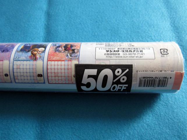 カレンダーはDocomoで貰う派(?)なので、しばらくディズニーのを掛けていたのですが、50%オフになっていたのでつい買ってしまいました。