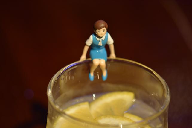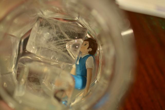 撮影中にフチ子さんを、ビールグラスに落としちゃいました。