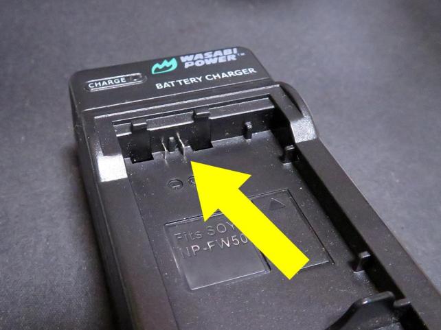 他のカメラに付属してくる純正のチャージャーと比べるとなんとなく安っぽい造りに見えてしまいますが、当然しっかりバッテリーは収まり充電してくれました。